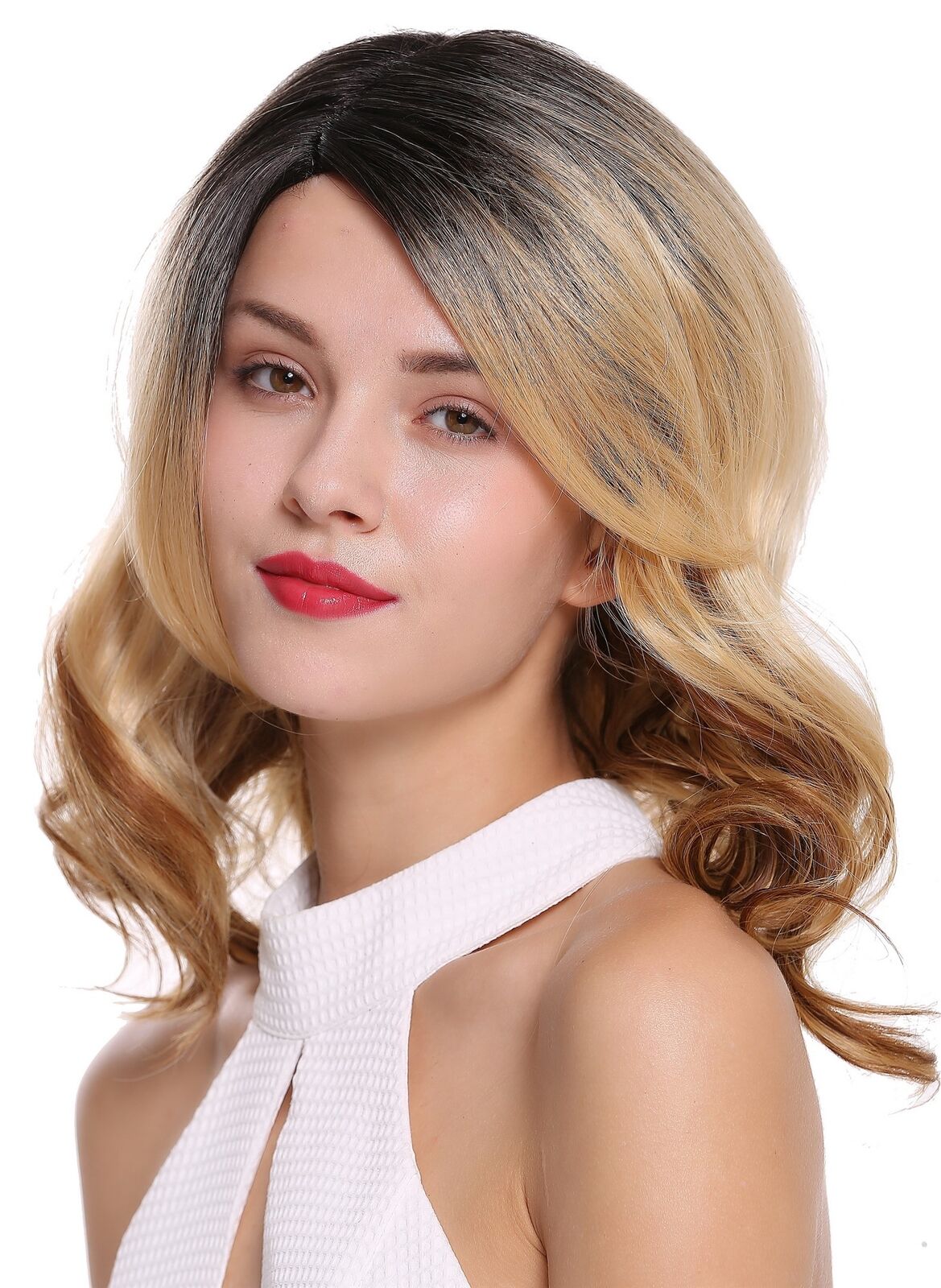 Perruque Femme Lace-Front Mi-Longue Bouclée Ombre Noir Cuivre Blond