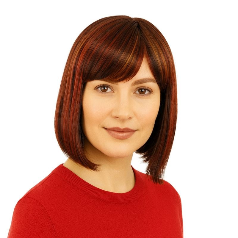 Perruque femme courte Châtain Cuivré Méché Blond Clair/rouge JULIETTE 33H130