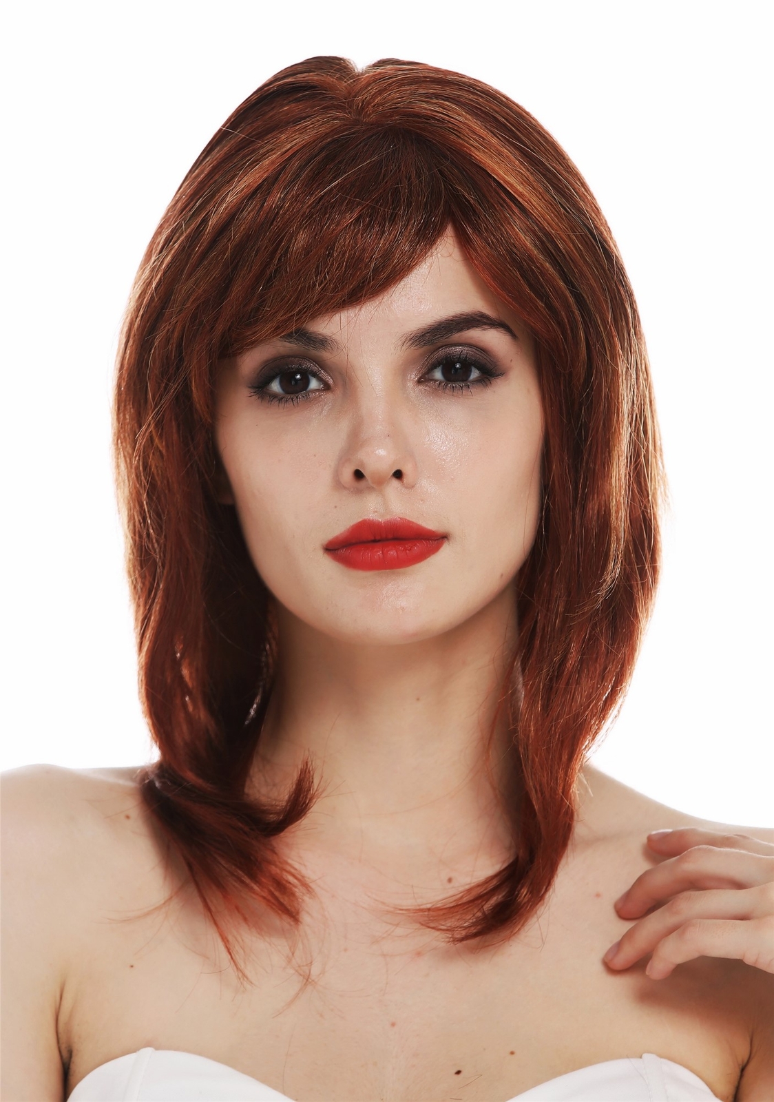 frange à clips peruk châtain cuivré méché blond clair ref: 20 en 6bt27b