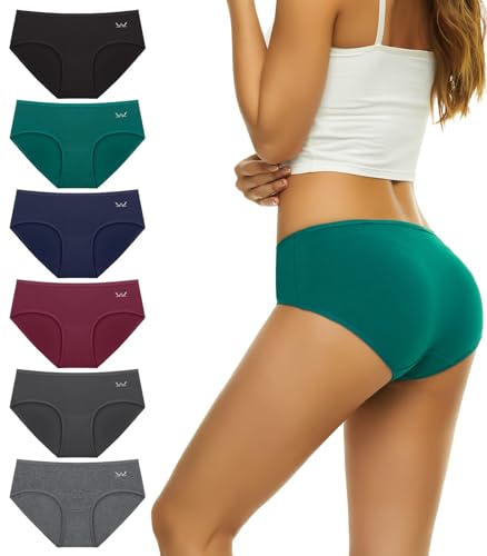 Culotte Femme Coton sous-vêtements Femme Stretch Taille Moyenne Panties Slip Respirant Multipack Paquet de 6, Dark XS