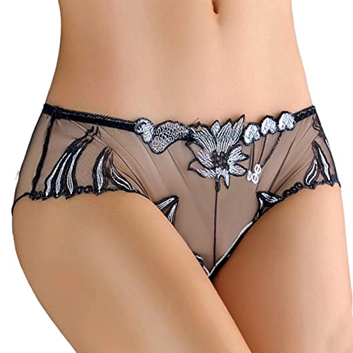 Culotte Femme Grande Taille - sous-vêtements Femme String Dentelle Transparente Brodée avec Découpe Dos Évidé et Design