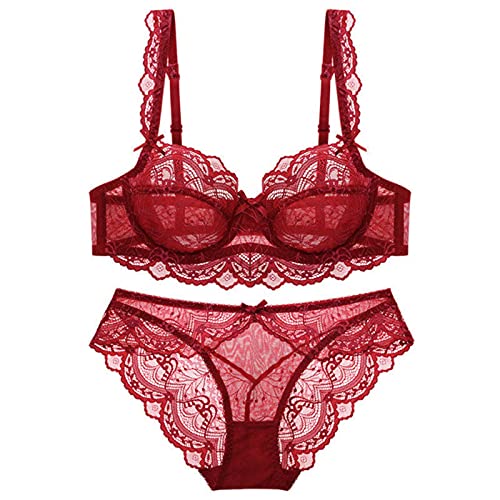 WEITING Ensemble de sous-vêtements sexy en dentelle ultra fine soutien-gorge et culotte grande taille ensemble lingerie femmes soutien-gorge A B C D E bonnet 95C 95D rouge vin, 85C