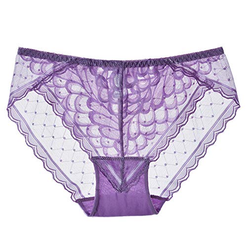 HAIBI Femme Culotte Slips Lot De 3 Dames Sexy Culottes en Dentelle Transparente Femme Tongs Transparentes Souples sans Couture Grande Culotte Taille Plus, 3 Pièces Violet, M