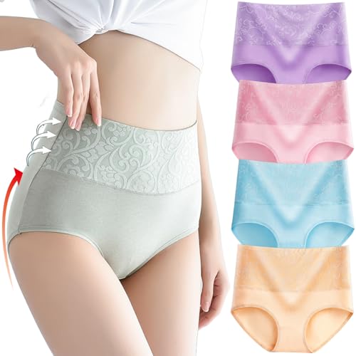 KEYULI Bloomyfit - Culotte taille haute anti-fuite, taille haute pour incontinence, anti-fuite, culotte contrôle du ventre, culottes en coton pour femmes (4XL (100-110 kg), 4 pièces-A)