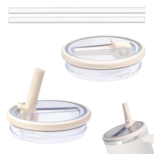 LOOHAOC Lot de 2 Couvercles de Remplacement pour Stanley Cup 40oz avec Paille et Brosse de Nettoyage, Accessoires Compatibles Stanley Cup(blanc ivoire)