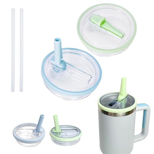 JAONLD 2 Pièces Remplacement de Couvercle pour 40 oz,Couvercles de Tasse Réutilisables Anti-Fuite et Anti-Poussière avec 2 Pièces Paille,Stanley Cup Couvercle Remplacement(Bleu clair,Vert clair)