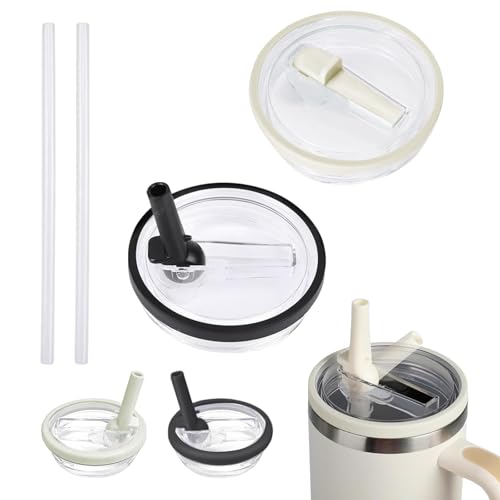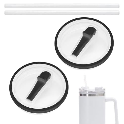 JAONLD 2 Pièces Remplacement de Couvercle pour 40 oz,Couvercles de Tasse Réutilisables Anti-Fuite et Anti-Poussière avec 2 Pièces Paille,Stanley Cup Couvercle Remplacement(Blanc,Noir)