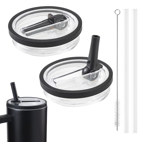 LOOHAOC Lot de 2 Couvercles de Remplacement pour Stanley Cup 40oz avec Paille et Brosse de Nettoyage, Accessoires Compatibles Stanley Cup(Noir)