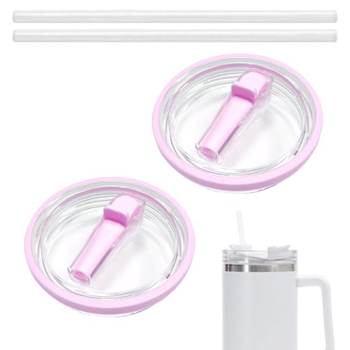 NEERIX Lot de 2 couvercles de rechange, réutilisables, de qualité supérieure, avec paille, anti-fuite et anti-poussière, accessoires pour tasse Stanley Cup, avec couvercle et paille (rose)
