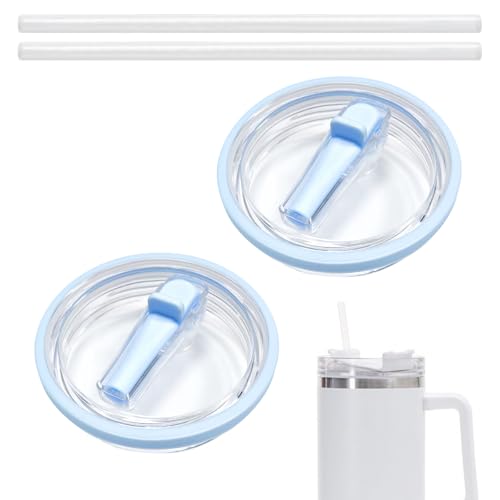 Vordpe 2 Pièces Cup Couvercle Étanche, Stanley Couvercle Remplacement 40 Oz, Avec 2 Pièces Paille, Réutilisables, pour Accessoires Stanley Cup (Bleu Clair)