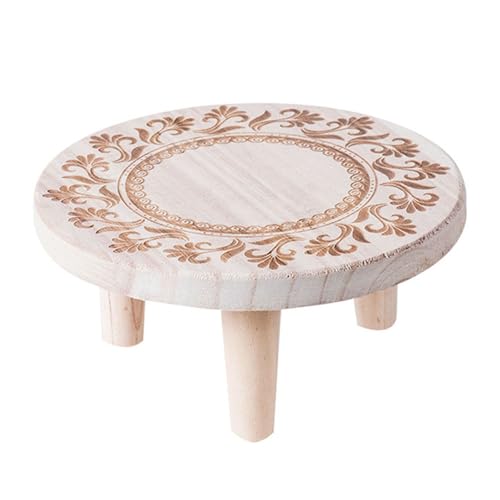 MoSundi Tabouret rond en bois pour plantes - 16 x 8 cm - Décoration rustique pour pots d'intérieur et d'extérieur - Curry clair