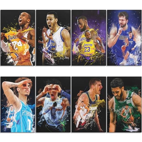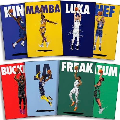 Stephen Curry, Bryant, James, Ja Morant, Antetokounmpo, Doncic, Tatum, Butler Poster Basketball Lot de 8 impressions sur toile pour garçons, salon, chambre à coucher, sans cadre : 20,3 x 30,5 cm