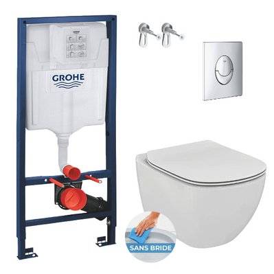 Grohe Pack WC Rapid SL GROHE + Cuvette Ideal Standard Tesi Aquablade rimless Plaque de commande Skate Chrome
