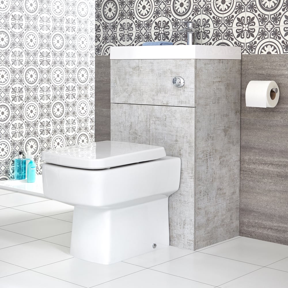 Meuble WC avec cuvette cubique et lave-main – Gris béton – 50 cm x 89 cm – Cluo