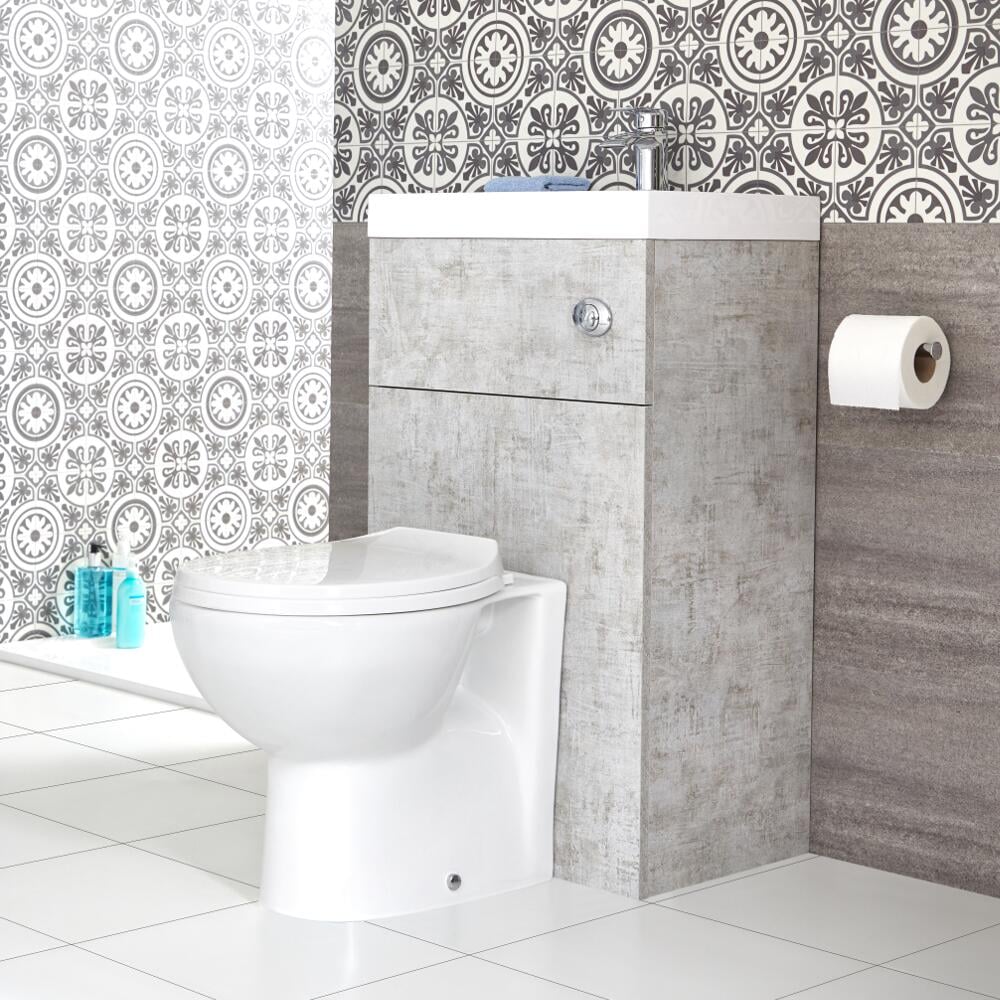 Meuble WC avec cuvette et lave-main – Gris béton – 50 cm x 89 cm – Cluo