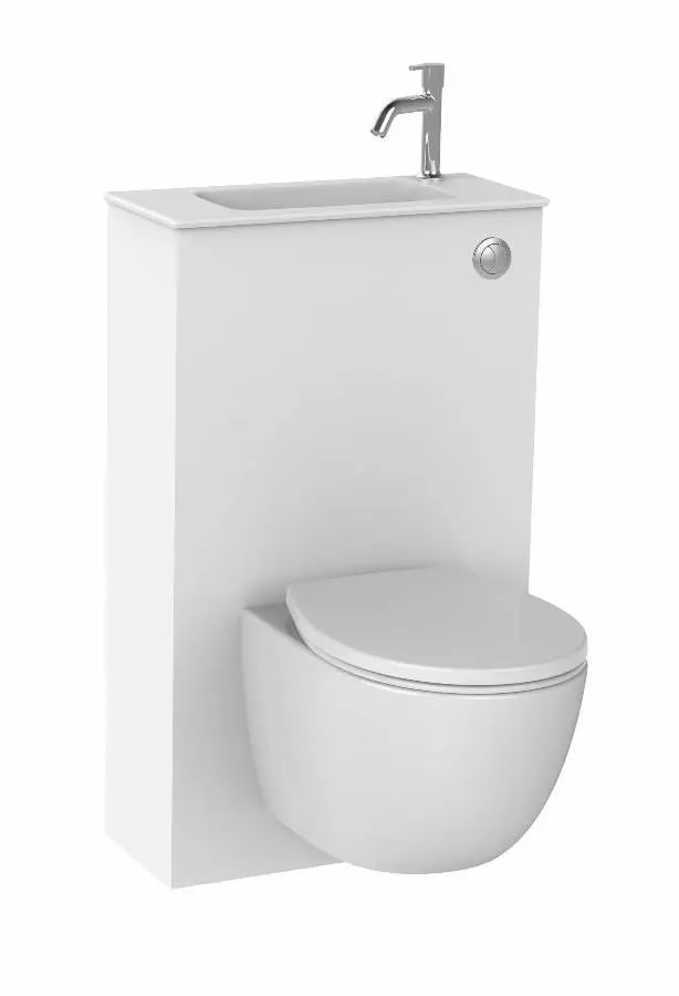 Meuble WC avec cuvette et lave-main moderne - Blanc - 50 cm x 89 cm – Cluo