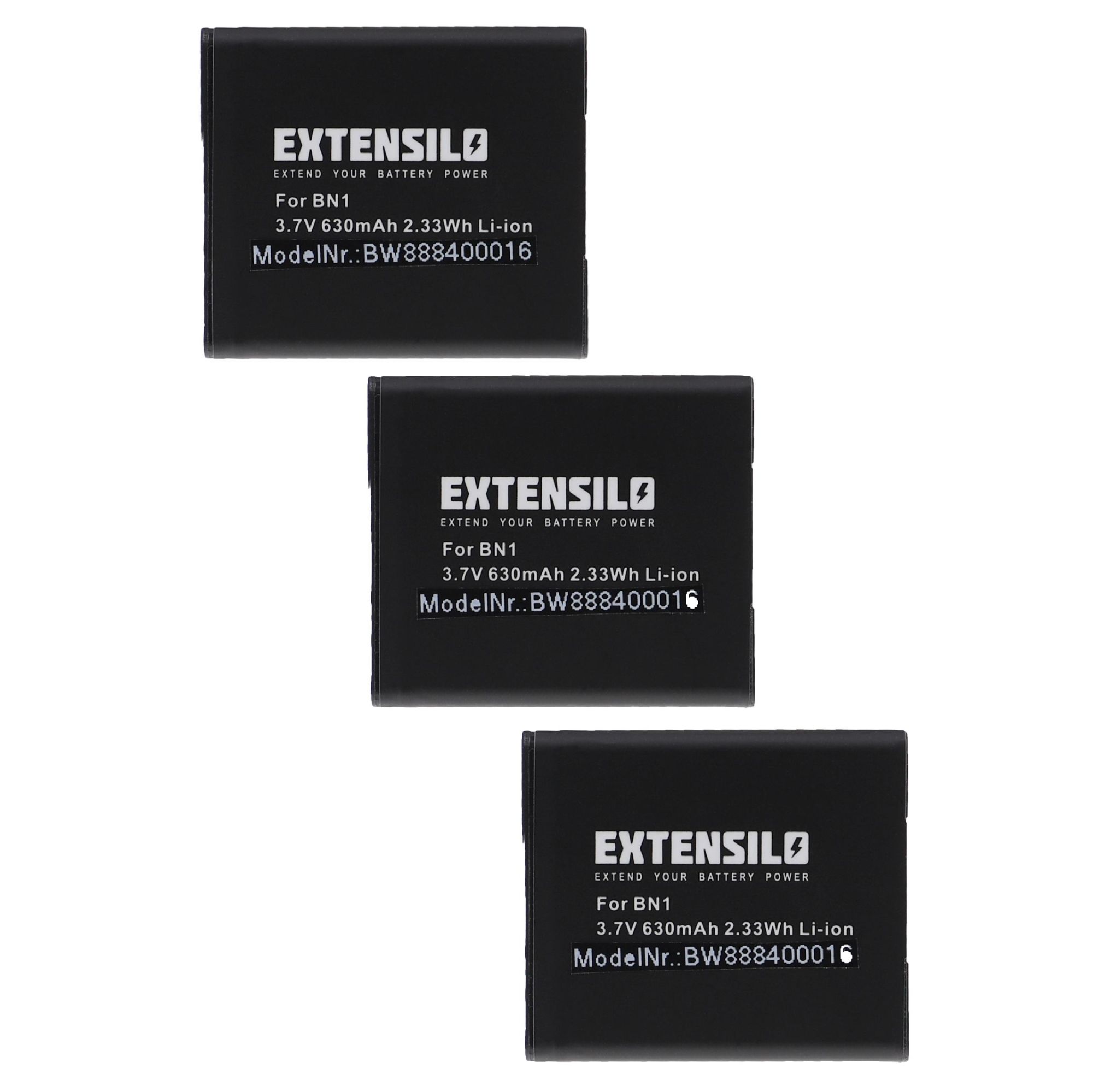 EXTENSILO 3x Batteries compatible avec Sony Cybershot DSC-W730, DSC-W710, DSC-W810, DSC-W830 appareil photo, reflex numérique (630mAh, 3,7V, Li-ion)