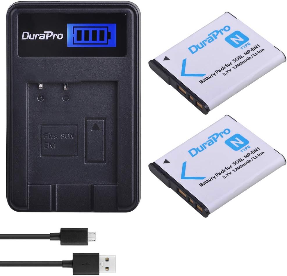 DuraPro 2Pcs NP-BN1 Battery + LCD USB Charger for Sony Cyber-Shot DSC-W800,DSC-WX220,DSC-W830,DSC-W810,Sony DSC-QX30,DSC-QX100,DSC-QX10 Digital Camera