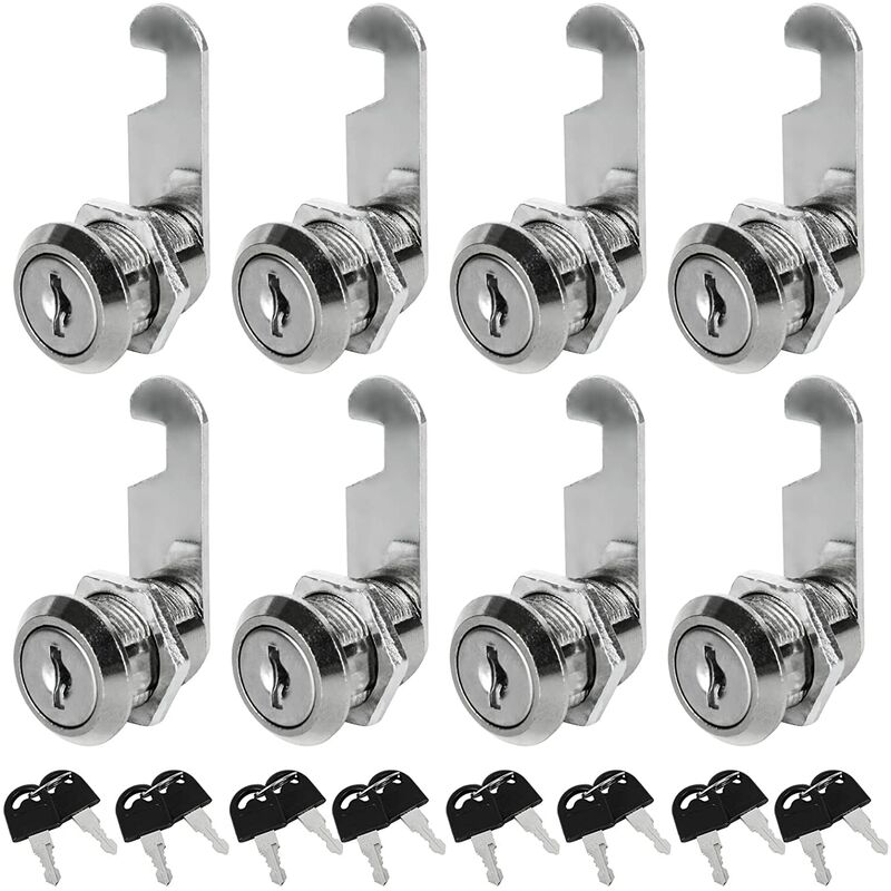 Lot De 8 Serrures Boîte Aux Lettres Universelle, 20MM Serrure Batteuse Cylindre, Serrure à Came En Alliage De Zinc Avec 16 Clés Pour Tiroir, Armoire,