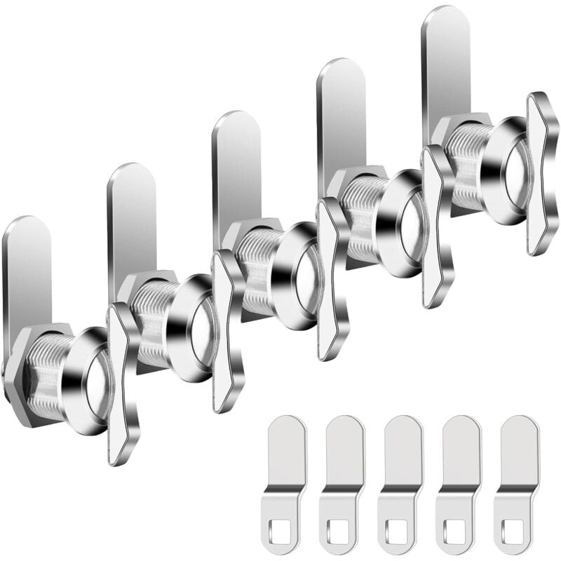 Lot de 5 serrures à came décalées, serrure à bouton rotatif pour tiroir, boîte aux lettres, armoire de camping-car, cylindre de serrure de rechange