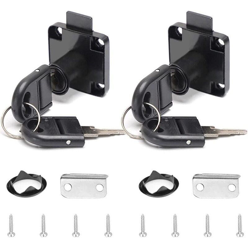 2 Pièces Noir Serrure de Tiroir de Bureau Serrure en Alliage avec 4 Clés Serrure Cylindre de Meuble Pour Bureau Boite aux Lettres Tiroir Placard