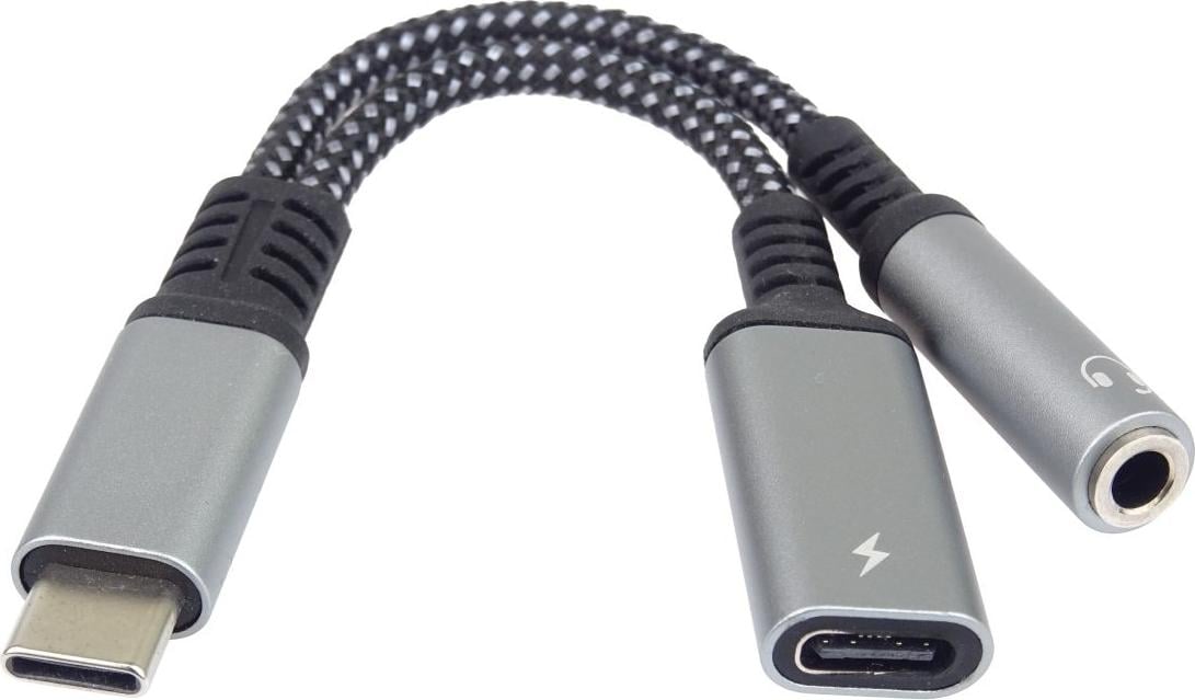 PremiumCord Redukce USB-C /3,5mm jack s DAC chipem + USB-C pro nabíjení 13cm