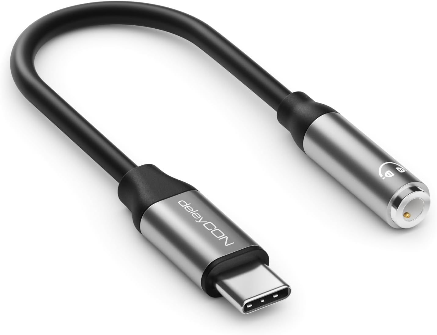 Co2 Adaptateur USB-C vers Mini Jack 3,5 mm AUX avec DAC HD 128 kHz, Meilleure qualité sonore, Aluminium Space Grey, câble Compatible avec iPhone, MacBook, iPad Pro, Galaxy (DAC).
