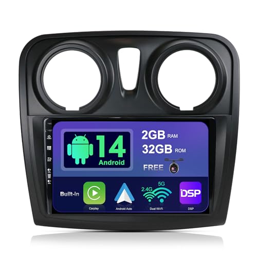 GONFEN 8-Cœurs 4Go+64Go Android 14 Dab+ Autoradio pour Dacia Sandero Logan Lodgy Duster Dokker avec Navi GPS Voiture Stéréo sans Fil Apple CarPlay Android Auto DSP WiFi USB Bluetooth Caméra 8 Pouces