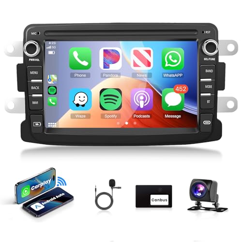 YZKONG Autoradio pour Renault Dacia Duster Sandero Logan Dokker Capture avec Wireless CarPlay Android Auto 7 Pouces écran Tactile Lecteur multimédia Radio Bluetooth/RDS/FM/AM/Mirror Link