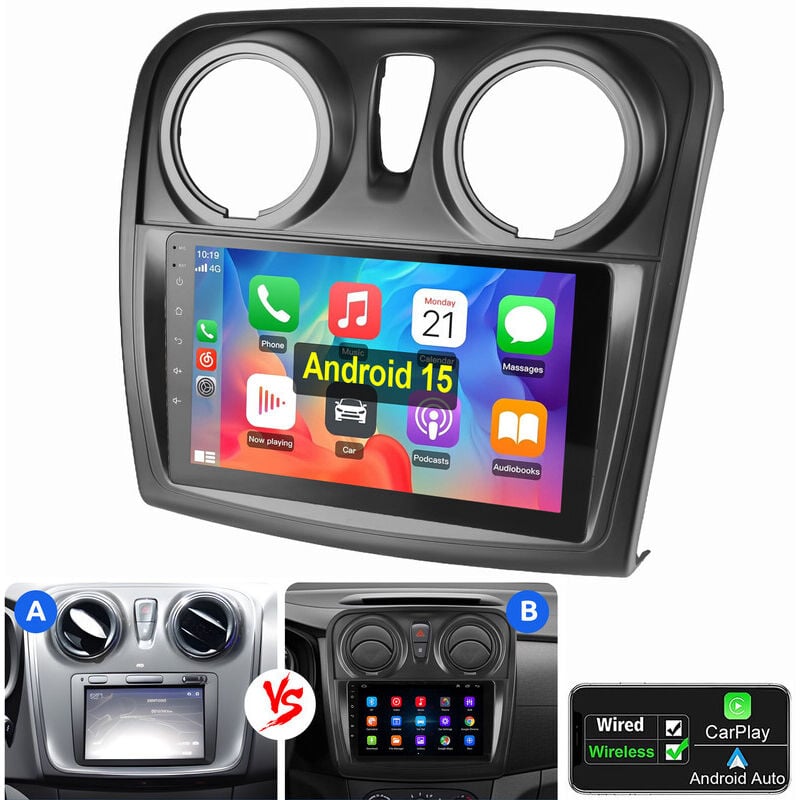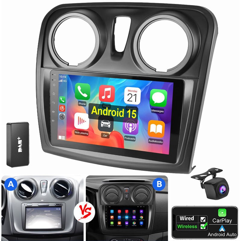 Autoradio Android 15 GPS WIFI RDS pour Renault Dacia Sandero Duster Symbol 2+32G