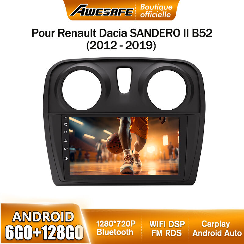 AWESAFE Autoradio 4G Android 13 6Go+128Go pour Renault Dacia SANDERO II B52 (2012-2019) 9'' Écran Tactile Carplay GPS Android Auto