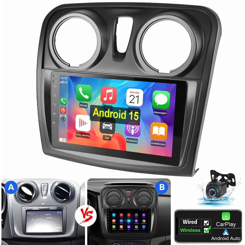 Autoradio 9" Android 15 Carplay pour Lada Renault Dacia Logan 2 Sandero GPS WiFi 4+64G CAM
