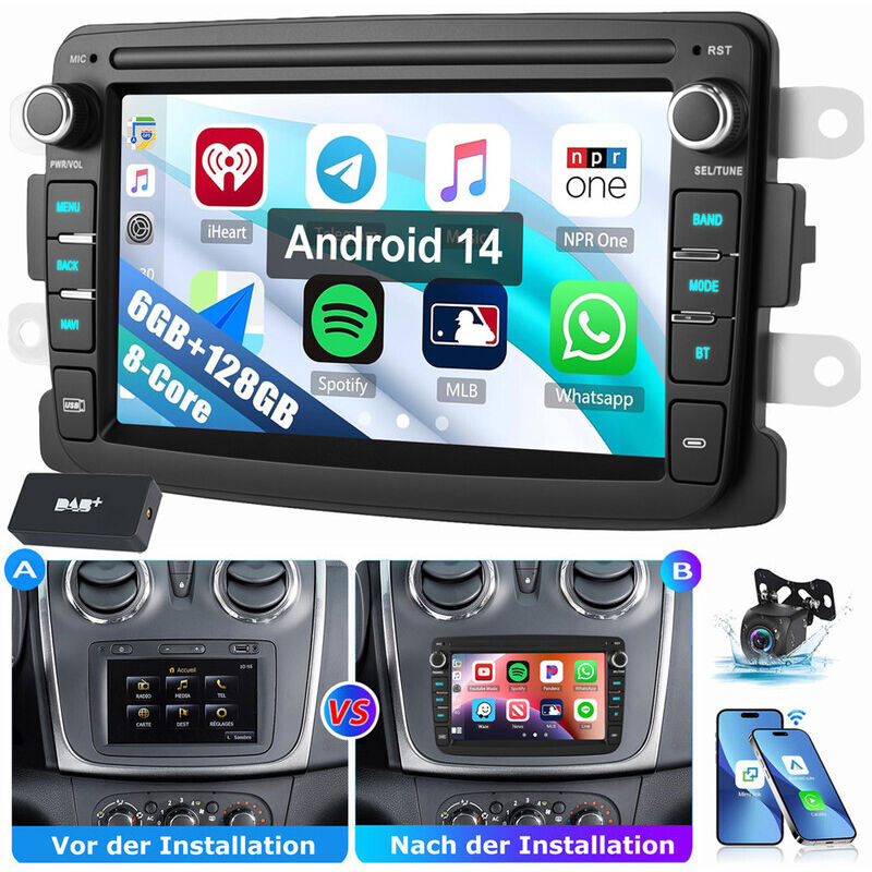 Pour Renault Dacia Duster Dokker Logan Sandero 6 + 128G APPLE Carplay autoradio Android 14 6+128G DAB CAM