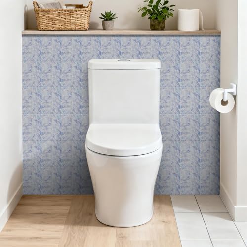 Credence Adhesive Pour Cuisine 17X23CM Bleu Blanc Dalle Pvc Adhesive Murale Salle de Bain,Feuilles de Stickers Muraux en Vinyle, Stickers Carrelage Imperméables