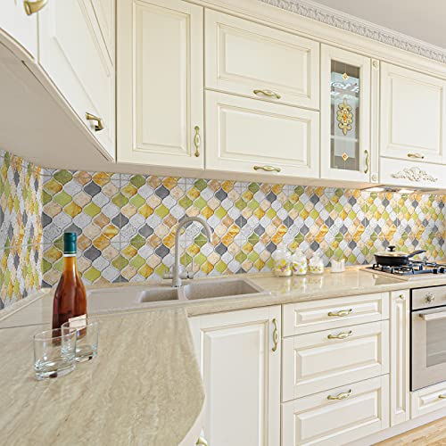 Credence Adhesive pour Cuisine 10X10 Bleu Jaune Stickers Cuisine Stickers Muraux Cuisine Carrelage Adhesif Mural Stickers Salle de Bain Dalle Pvc Adhesive Murale (10 Pièces)