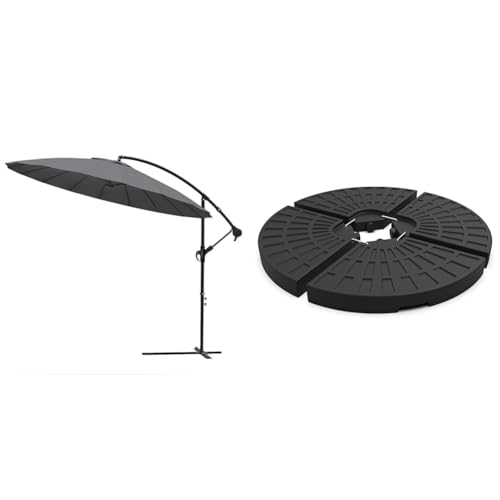vounot Parasol Déporté de Jardin Shanghai 3M avec Manivelle Anti-Retour 18 Baleines & Dalle Lestage pour Parasols Base de Parasol en HDPE 4pcs à Remplir Protection UV Dalle