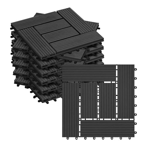 WOLTU 11 pièces Carrelage de sol Dalle WPC 30x30cm pour jardin terrasse extèrieur fixation plug-in, Anthracite 1 m²