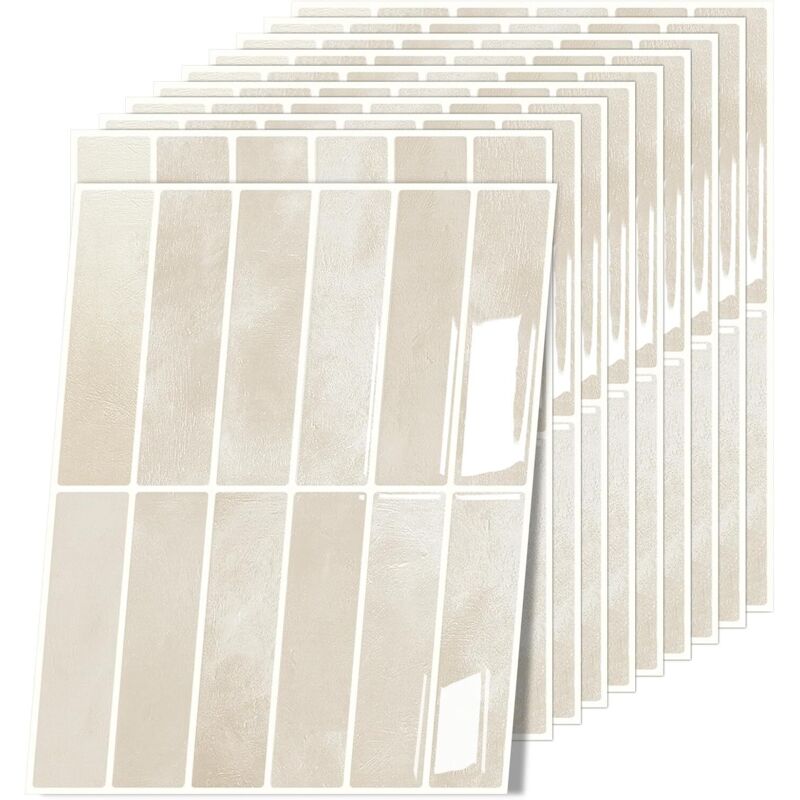 Credence Adhesive pour Cuisine Salle de Bain, Vinyle Beige Carreaux Carrelage Adhesif Mural Cuisine Metro 3D Dalle Adhesive Murale ImperméAble (10