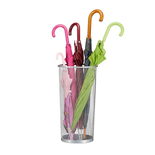 Relaxdays Pied de parasol en métal, Porte-parapluie en osier ronde Porte-canne universel, Ø 26 cm, hauteur 50 cm, argent