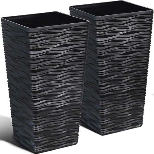 Worth Lot de 2 Grands Pots de Fleurs Noirs en Plastique pour intérieur et extérieur – 55,9 cm de Hauteur – Pots de Fleurs décoratifs Modernes avec Finition ondulée pour Porche, Patio, terrasse