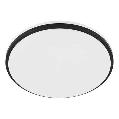 Eglo Plafonnier LED extérieur Minerario, lampe de plafond pour balcon terrasse, luminaire d'extérieur en plastique noir, IP54, blanc chaud, Ø 39 cm