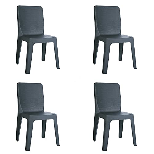 Resol Iris Lot de 4 chaises en Plastique pour Jardin, terrasse, Gris foncé
