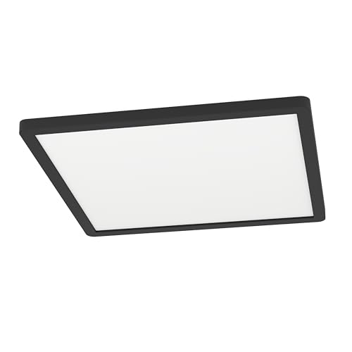 Eglo Plafonnier LED extérieur Minerario, lampe de plafond pour balcon terrasse, luminaire d'extérieur en plastique noir, IP54, blanc chaud, 39 x 39 cm