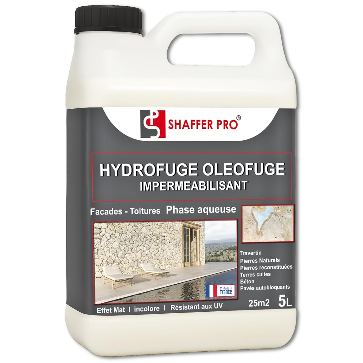 MEVRONISSHOP-SHAFFER Pro Hydrofuge Oléofuge Professionnel ¿ Imperméabilisant Travertin, Pierre Naturelle, Façade, Carrelage Extérieur Terrasse, Dalle, Produit Sol Anti-Mousse ¿ 5L ¿ Made in France