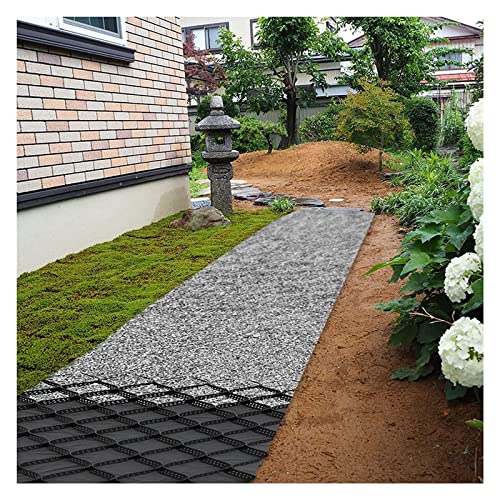 Grille À Gravier, Géogrille Robuste pour Pavés À Forte Pente avec Trous De Drainage pour Sol, Gazon, Pierres, Grille Stabilisatrice pour Abri De Jardin, Allée Et Allée(Black 8x8 ft,H-5cm/2in)