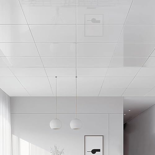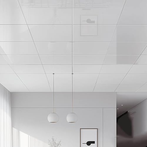 Enigmaire Dalles de Plafond Autocollantes en PVC pour Salle de Bain,Carreaux De Plafond À Décoller Et À Coller,Dalles de Plafond Suspendue en PVC imperméable,pour sous-Sol,Cuisine,Salle De Bain