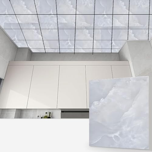 Enigmaire Dalles de Plafond Autocollantes en PVC pour Salle de Bain,Dalle De Plafond,Dalles de Plafond Suspendue en PVC imperméable,LéGer Et Installer Facile,Peut êTre Coupé,pour Maison,Cuisine