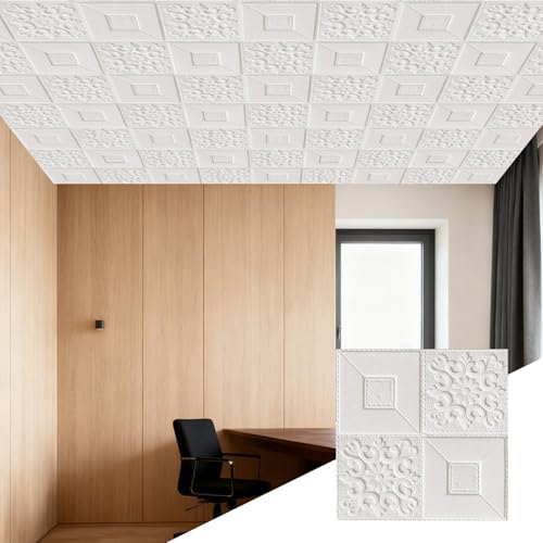 Cammeciso Dalles De Plafond Suspendu,Dalles De Plafond Autocollantes 3D,Plaque pour Plafond Salle De Bain A Coller,LéGer Et Flexible,pour Salon,Cuisine,Salle De Bain Et Chambre