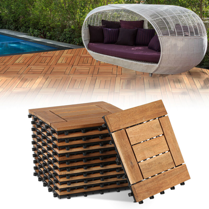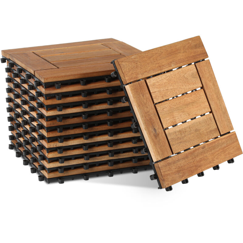 Randaco 11 pièces de dalles en bois d'acacia 30 x 30, dalles à clipser, dalles de balcon, dalles de terrasse, dalles de terrasse en bois, système à