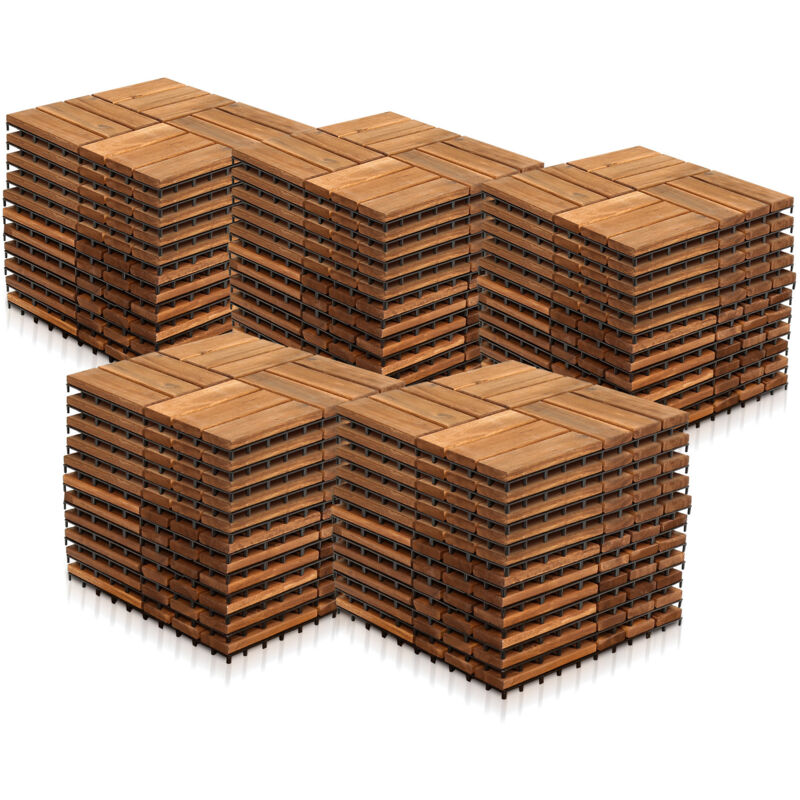 Randaco Lot de 110 dalles en bois dalles de terrasse 6 lattes 10 m², 30 x 30 cm, Dalles clipsables en bois d'acacia